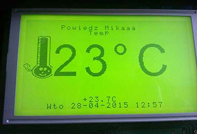 Mika ma duże, widoczne z daleka znaki. Wyświetlacz MIKI to 240×128 i dzięki wbudowanemu czujnikowi temperatury potrafi powiedzieć (zapytana) jaka jest temperatura i wyświetlić duże znaki z rysunkiem termometru.