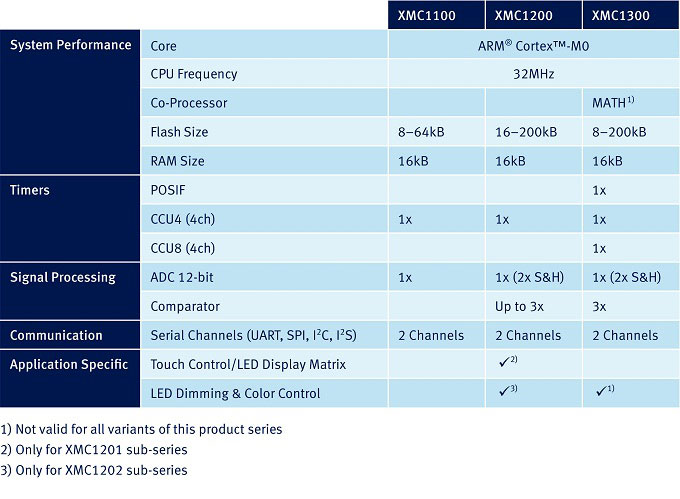 Zestawienie podstawowych cech mikrokontrolerów XMC1000