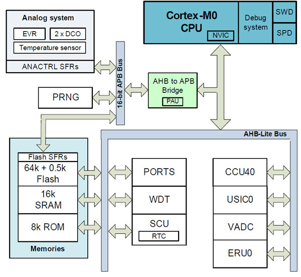Rys. 1. Schemat blokowy mikrokontrolerów XMC1100