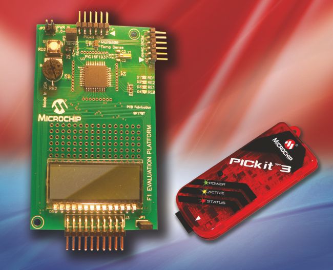 Interfejs-programator PICkit3, wchodzący w skład zestawu F1 Evaluation Kit, można wykorzystać do obsługi wszystkich mikrokontrolerów firmy Microchip