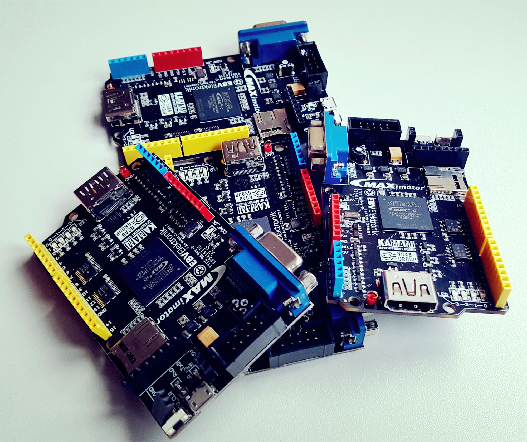 Produkowany przez KAMAMI.pl zestaw startowy maXimator to nowoczesna platforma startowa dla konstruktorów zainteresowanych układami FPGA, wyposażona układ FPGA z rodziny Altera/Intel MAX10, wyposażony w złącze zgodne z Arduino Uno Rev 3, interfejsy wideo HDMI+CEC+DCC i VGA oraz peryferia typowe dla współczesnych systemów cyfrowych. Zestaw został opracowany i jest produkowany w Polsce, w wersji promocyjnej w jego skład wchodzą następujące elementy: