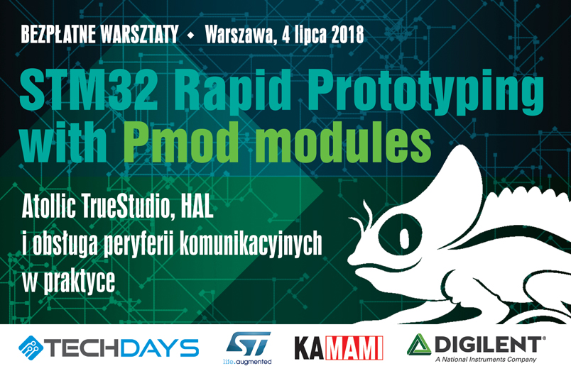 Już 4 lipca 2018 odbędą się w Warszawie, przygotowane przez KAMAMI.pl, Digilent, TECHDAYS.pl (autoryzowany partner szkoleniowy STMicroelectronics) oraz firmę STMicroelectronics bezpłatne warsztaty programowania mikrokontrolerów STM32. Noszą one tytuł „STM32 Rapid Prototyping with Pmod modules„.