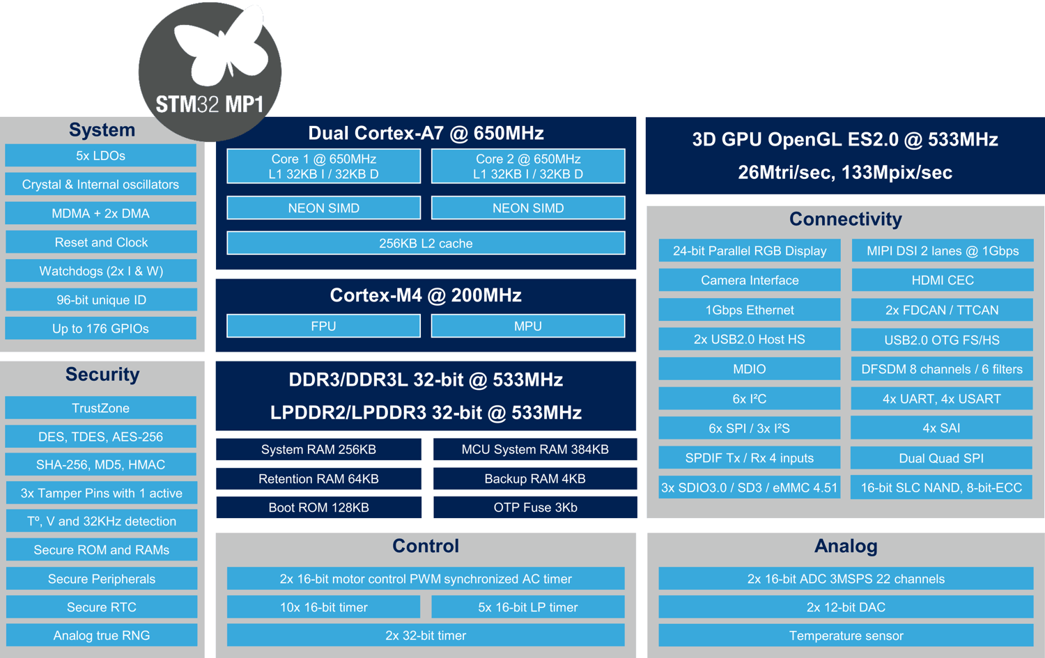 Kilka dni temu opublikowaliśmy w ślad za działem prasowym STMicroelectronics newsa poświęconego nowej rodzinie układów STM32MP. Tym razem nie są to kolejne układy mikrokontrolerowe, a rasowe mikroprocesory aplikacyjne, wyposażone w rdzenie Cortex-A7. Fani mikrokontrolerów znajdą w STM32MP także coś dla siebie, wybrane modele doposażono także w pełnego (z FPU) Corteksa-M4.