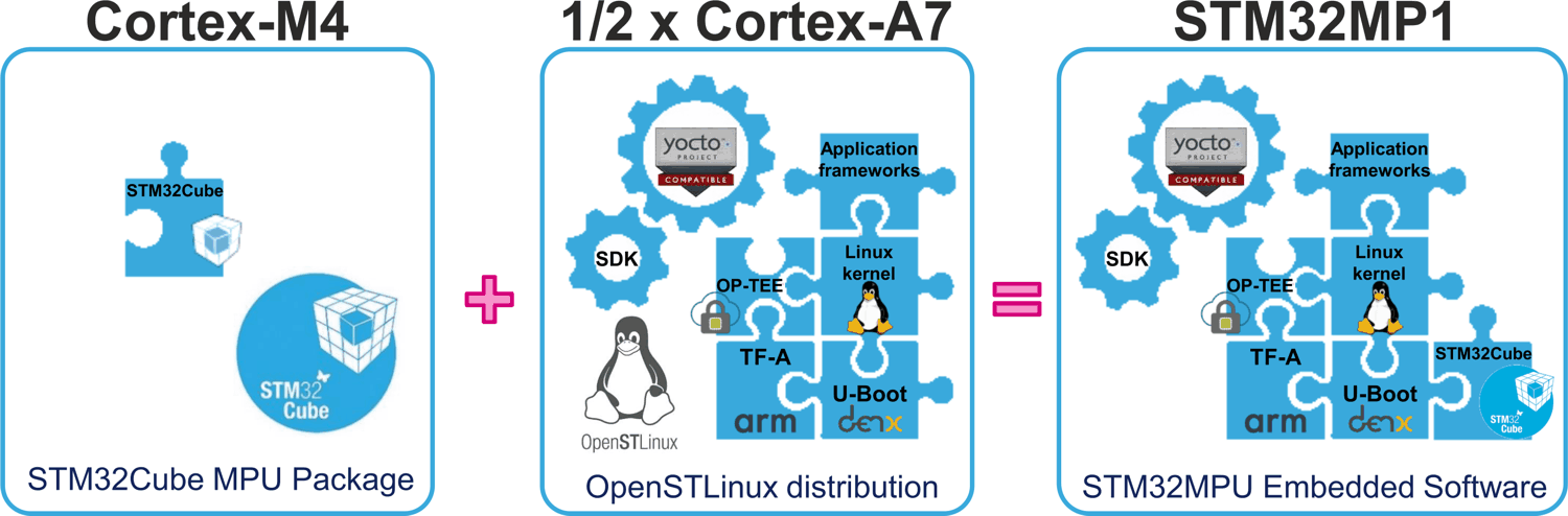 Układy STM32MP1 są predestynowane do pracy z systemami operacyjnymi, szczególnie z Linuksem. Producent doskonale zdawał sobie z tego sprawę, więc równolegle z układami wprowadził na rynek:
