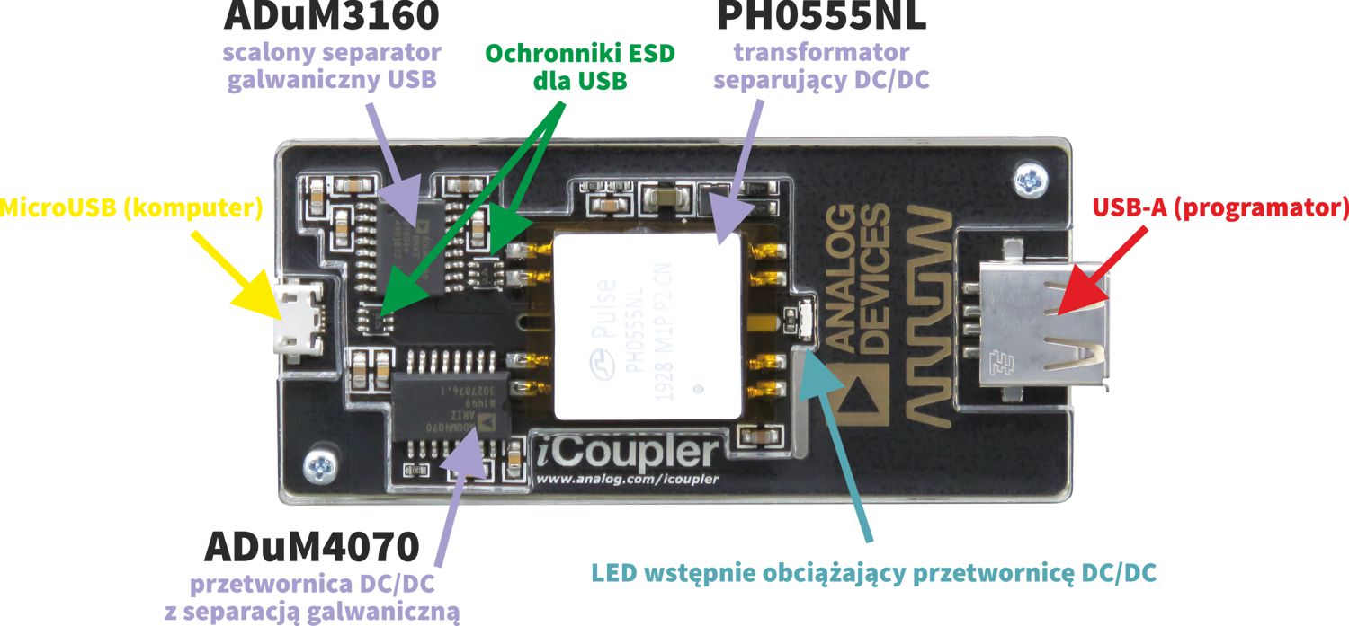 W artykule przedstawiamy separator USB, wykonany na układach ADuM3160 i ADuM4070 firmy Analog Devices. Pliki projektu są dostępne do bezpłatnego pobrania na końcu artykułu. Urządzenie opracowała i wyprodukowała na zlecenie firm: Arrow Electronics oraz Analog Devices firma KAMAMI.pl.