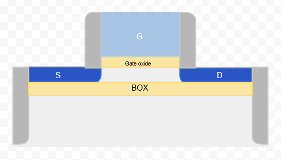 Strukturę tranzystora FD-SOI pokazuje rysunek poniżej: