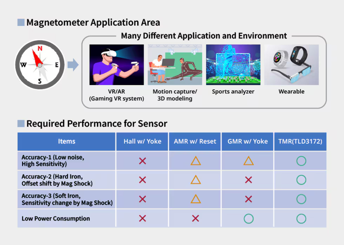 Jako magnetometr czujnik TMR może wykazać się większą dokładnością i niższym zużyciem energii niż wcześniejsze czujniki