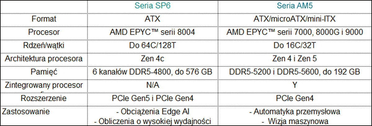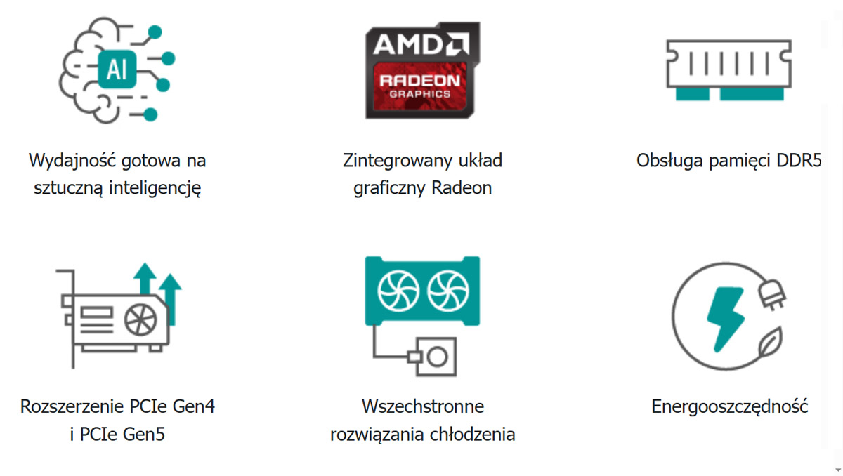 Zoptymalizowane pod kątem różnorodnych potrzeb: płyty główne można wyposażyć w procesory AMD Ryzen™ serii 8000G PHX1 z wbudowaną grafiką i NPU dla Edge AI lub AMD Ryzen™ serii 7000 i 9000 dla wyjątkowej mocy obliczeniowej.