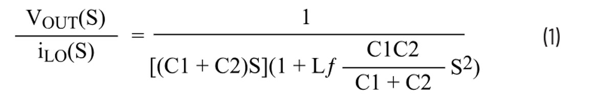 Aby utrzymać podobną wydajność przejściową, impedancja wyjściowa powinna pozostać stała przed i po dodaniu filtra LC. Oznacza to, że pojemność wyjściowa powinna być mniej więcej taka sama z filtrem LC i bez niego. Zasadniczo pojemność C2 na rys. 1 może być podobna do konstrukcji bez LC, a pojemność C1 może mieć znacznie mniejszą, dzięki czemu C1 może zdominować lokalizację częstotliwości rezonansowej. Ponieważ C1 jest znacznie mniejsza niż C2, równanie 2 można uprościć do równania 3:
