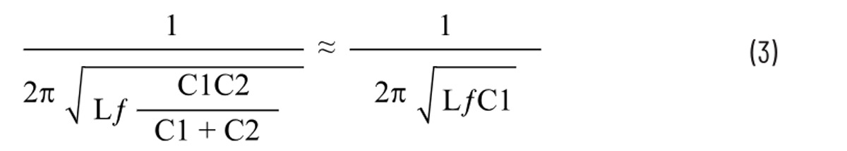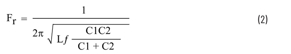 Zaleca się, aby pojemność C1 była co najmniej jedną dziesiątą pojemności C2. Po wybraniu C1, wartość Lf można obliczyć biorąc częstotliwość rezonansową z równania 3. Sprawdzając dostępność rzeczywistych komponentów, można określić optymalne wartości C1 i Lf.