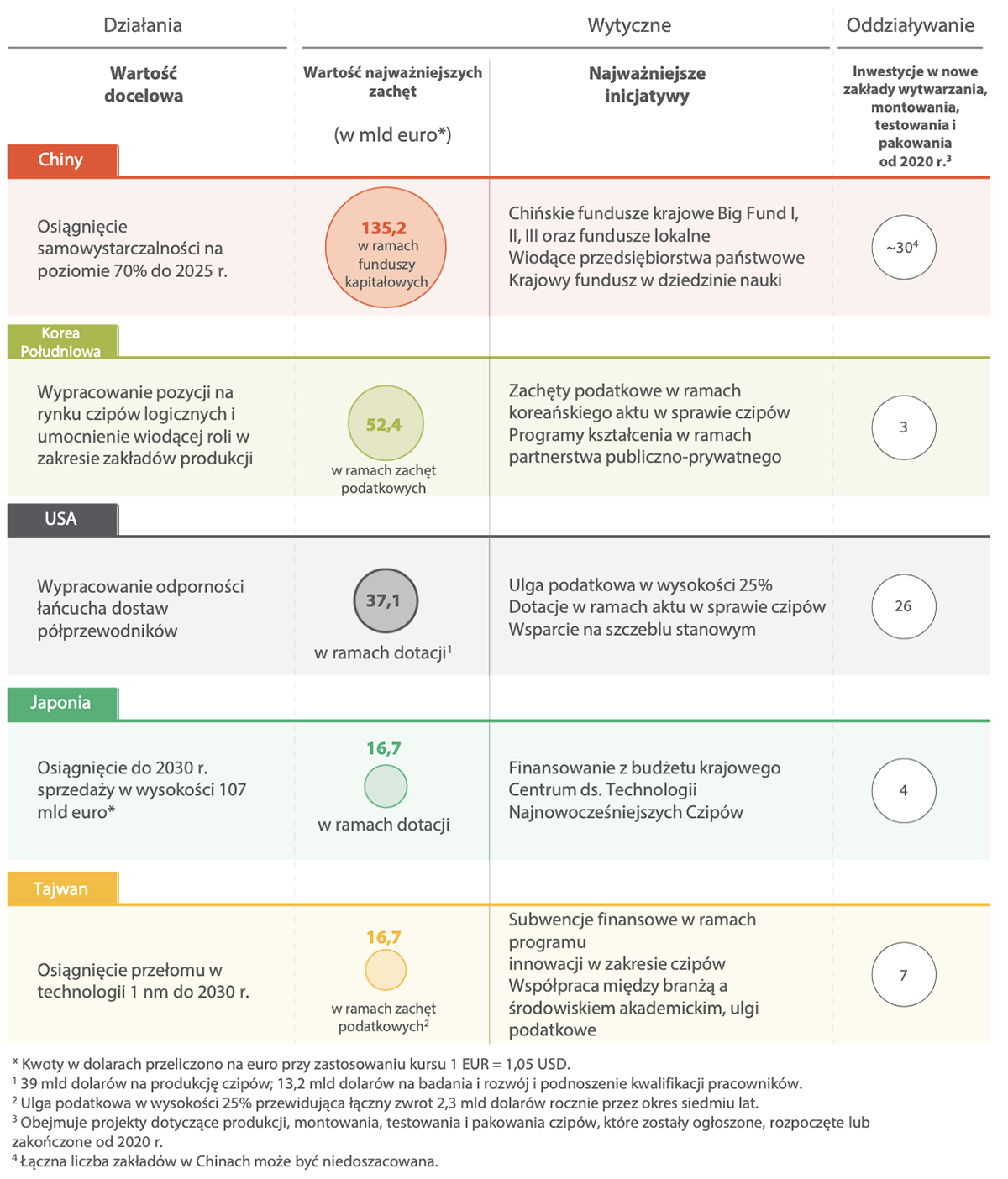 Inicjatywy wielu krajów, w tym USA, Tajwanu i Japonii, stanowią bezpośrednią konkurencję dla aktu w sprawie chipów. Duży nacisk położono tam na badania i rozwój zaawansowanych technologii.