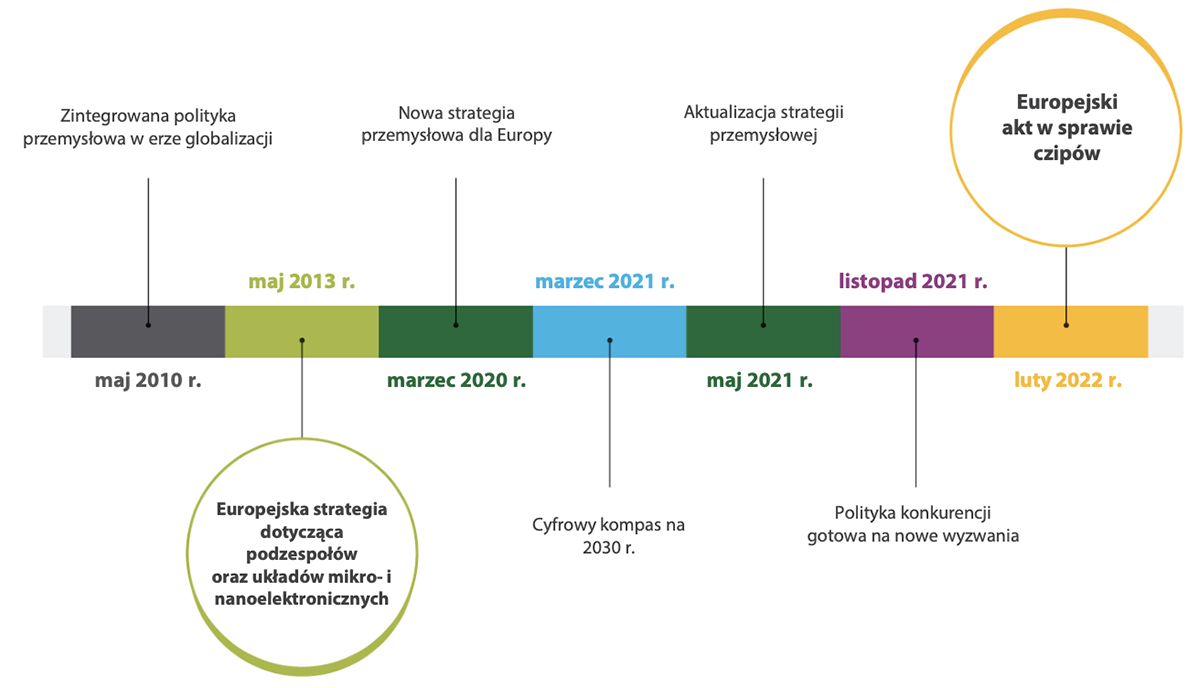 W lutym 2022 roku Unia Europejska opublikowała akt w sprawie chipów. Jego celem było poradzenie sobie z niedoborem przyrządów półprzewodnikowych i wzmocnienie pozycji technologicznej UE. Akt wszedł w życie w 2023 roku. Łączne koszty inwestycji w krajach członkowskich oszacowano na 86 mld EUR. Do 2030 roku udział w światowej produkcji mikrochipów ma wynosić 20%. Obecne przewidywania mówią o 11,7%. Trybunał doszedł o wniosku, że wdrażanie aktu postępuje zbyt wolno. Branża półprzewodników ma charakter globalny, a UE musi się mierzyć między innymi z silną konkurencją międzynarodową.