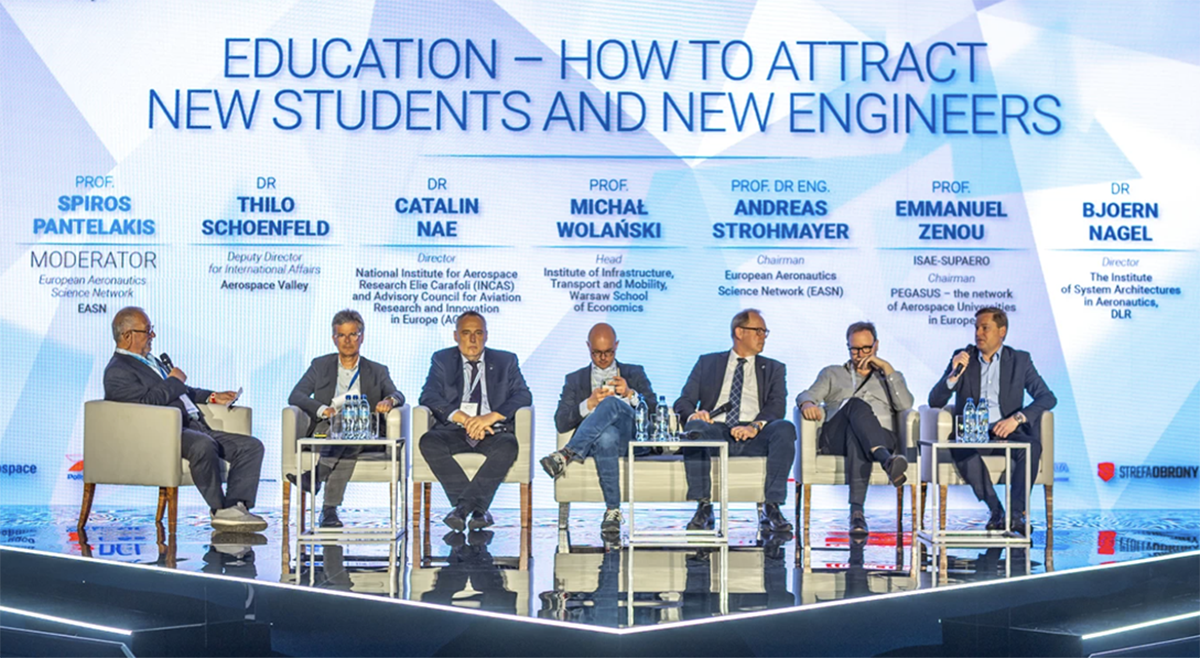 Konferencję otworzył panel dyskusyjny z udziałem przedstawicieli nauki i przemysłu, którzy omówili różne modele europejskiej współpracy w dziedzinie lotnictwa. Dużo miejsca poświęcono edukacji, dopasowaniu planów w zakresie rozwoju technologii i sposobów nauczania oraz treści stanowiących podstawę programów na uczelniach wyższych.