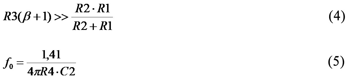 Elementy filtrujące są zawarte w bloku ujemnego sprzężenia zwrotnego od emitera tranzystora do wejścia. Elementy tworzące filtr to kondensatory C2, C3, rezystor R4 i kombinacja równoległa (dla sygnałów zmiennych) rezystorów R1 i R2, przy założeniu, że rezystancja wejściowa od strony bazy tranzystora jest bardzo wysoka i można ją zignorować.