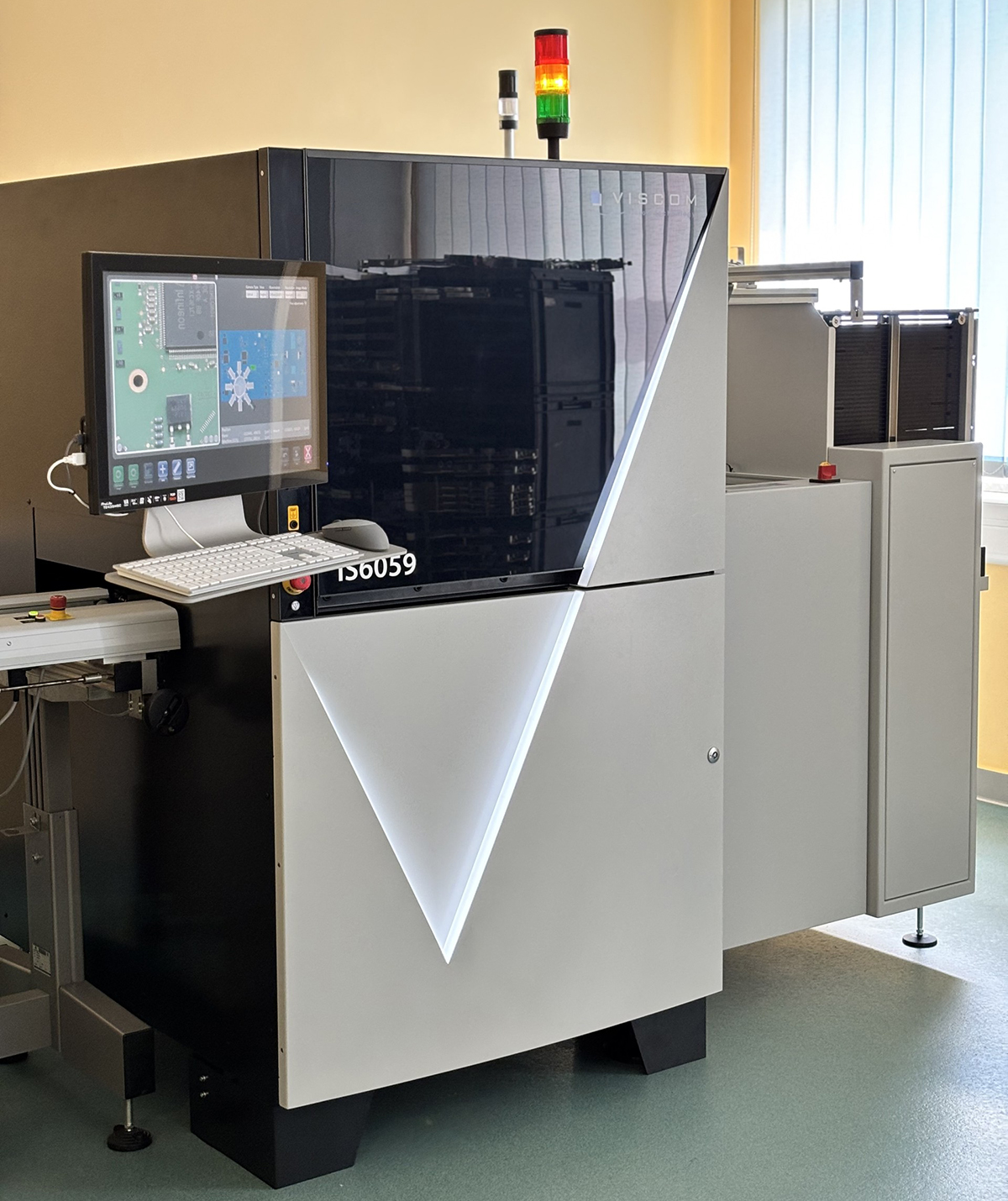 System Viscom iS6059 to zaawansowane rozwiązanie AOI przeznaczone do inspekcji płytek drukowanych (PCB) w technologii powierzchniowej (SMT). Urządzenie wyposażone jest w technologię kamer 3D XMplus-II, umożliwiającą przechwytywanie obrazów pod 9 kątami, co pozwala na precyzyjne wykrywanie defektów montażowych i lutowniczych. System wyróżnia się także wysoką szybkością działania, dokładnością pomiaru oraz możliwością integracji z rozwiązaniami typu MES i systemami Przemysłu 4.0.