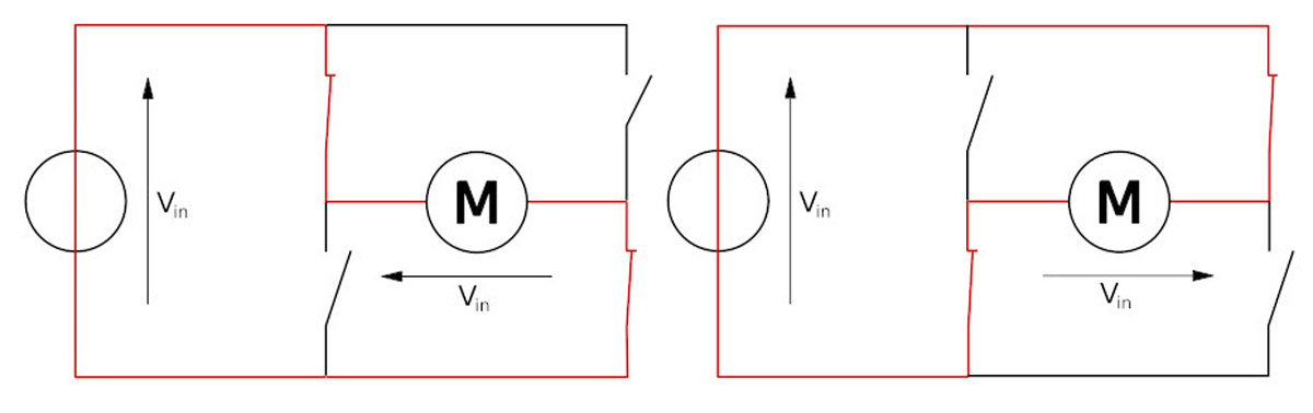 Rys. 1. Schemat sterownika silników w układzie mostka H (Źródło: wikipedia.org)