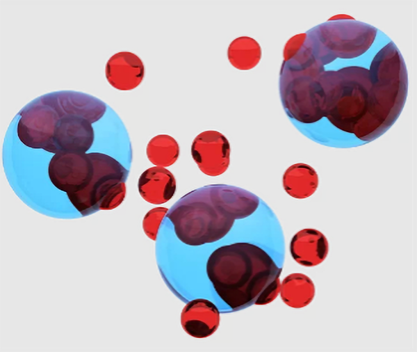 Rys.3 Cząsteczki HYDRON (niebieskie) wiążące zanieczyszczenia.