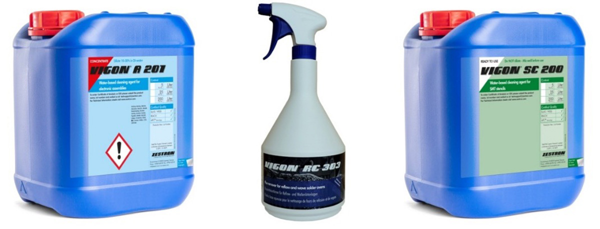 - Vigon RC 303 – Środek na bazie wody, bardzo skuteczny w usuwaniu zadymionych, zapieczonych pozostałości topników w urządzeniach do lutowania rozpływowego.