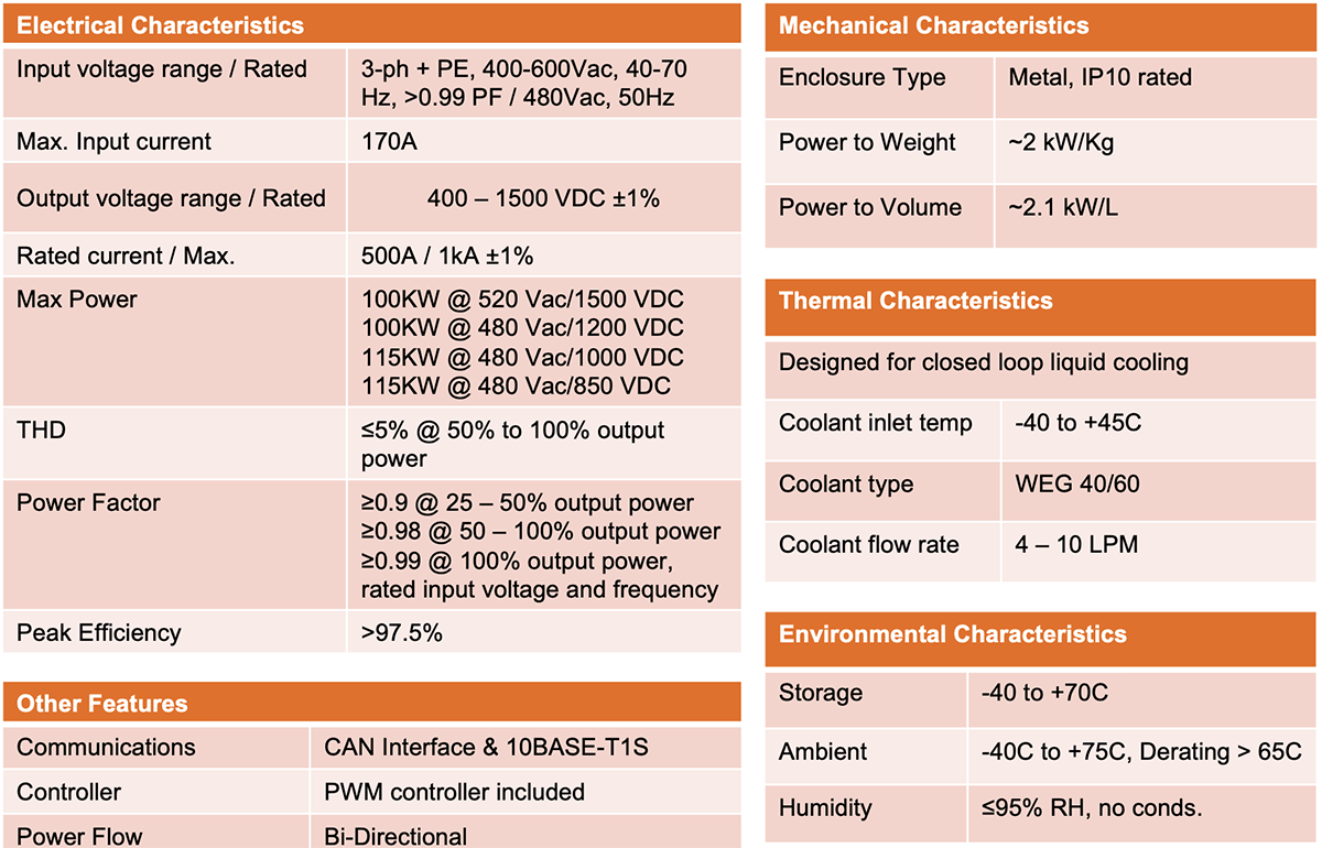 Moduł o mocy 100 kW został zaprojektowany z myślą o równoległym łączeniu w większe konfiguracje, a jednocześnie pełni funkcję wysoce funkcjonalnej samodzielnej szybkiej ładowarki.