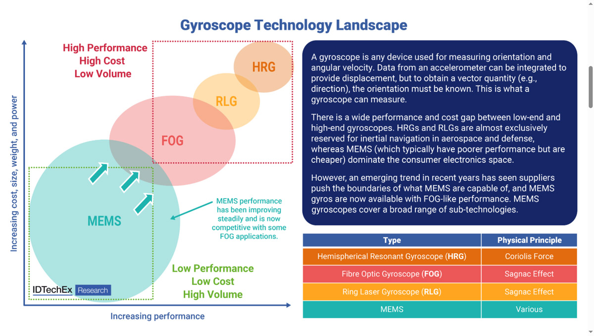 Przegląd technologii wysokiej klasy żyroskopów inercyjnych. Źródło: IDTechEx
