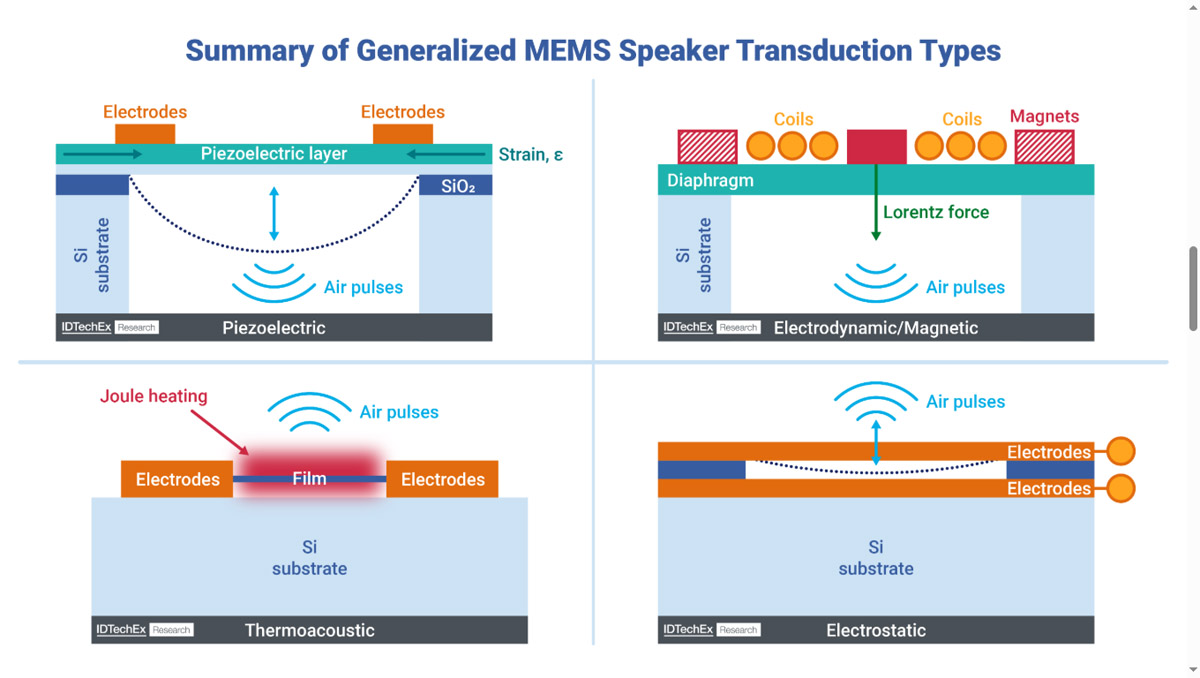 Przegląd metod transdukcji stosowanych w głośnikach MEMS. Źródło: IDTechEx