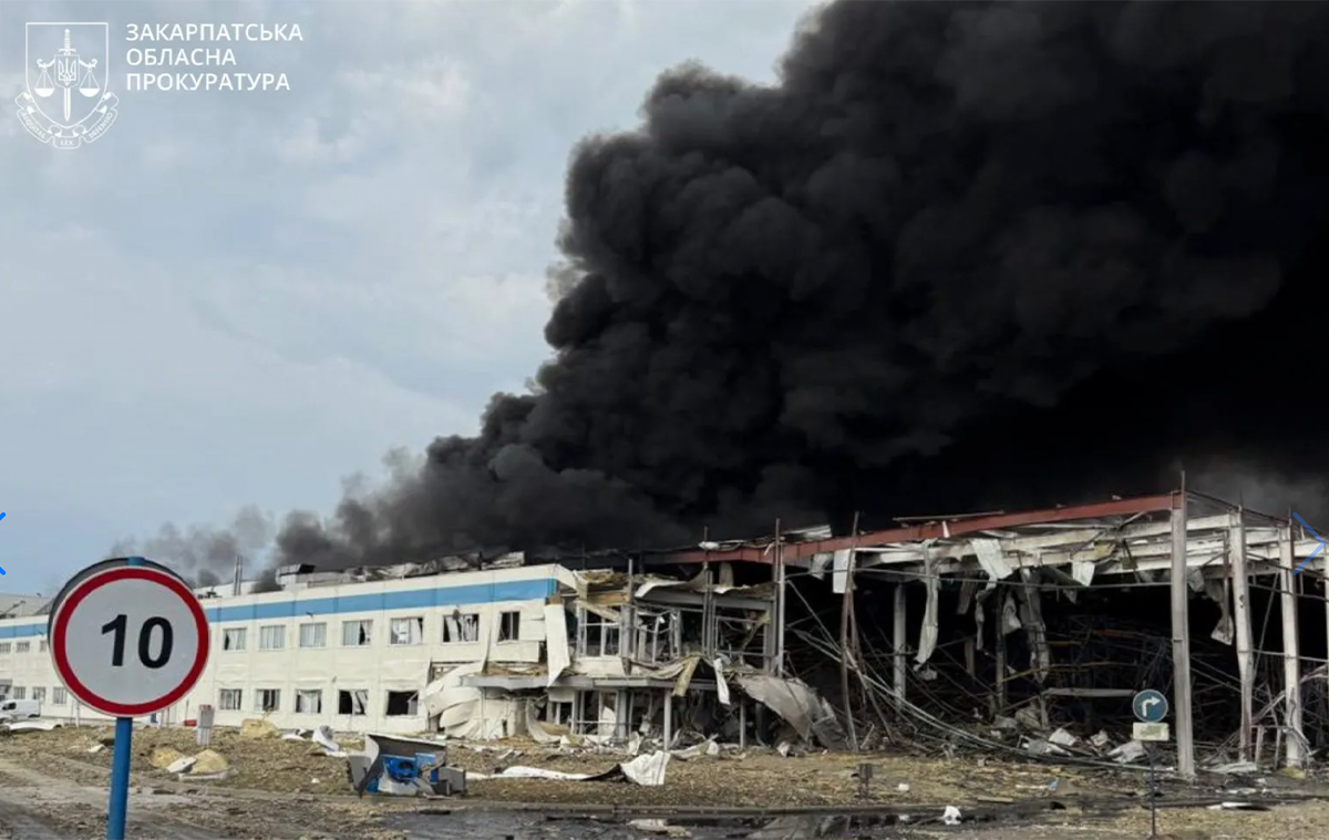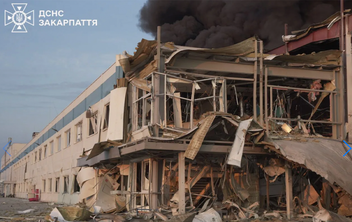 Następstwa rosyjskiego ataku na fabrykę Flex w mieście Mukaczewo w obwodzie zakarpackim na Ukrainie, 21 sierpnia 2025 r. (Andrii Sybiha/X)