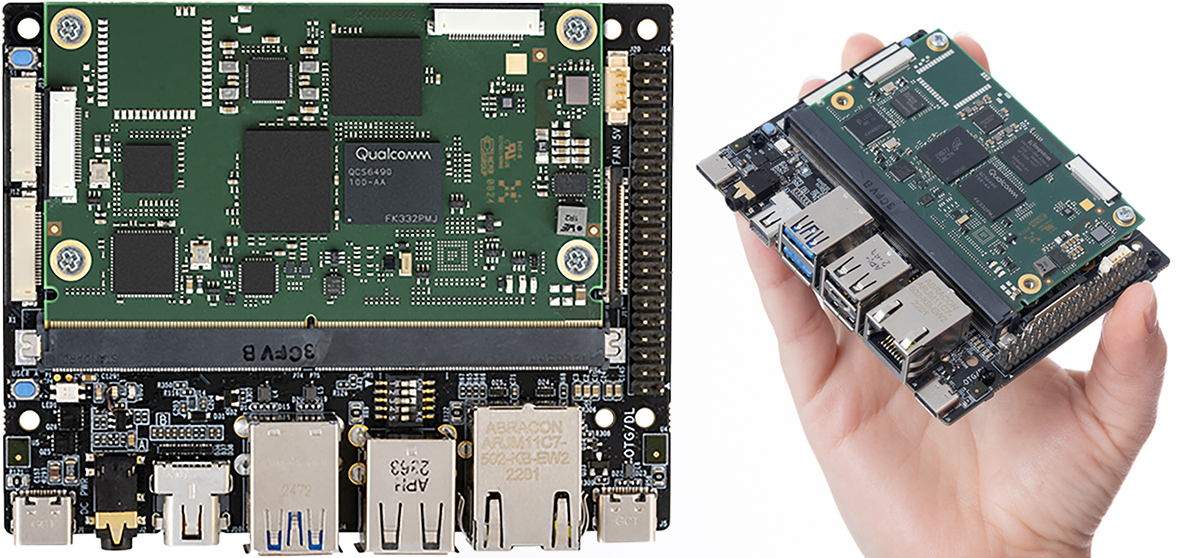 Zapewnia możliwość dostosowania modułów opartych na tym standardzie, a jednocześnie skraca czas wprowadzenia produktu na rynek i zwiększa skalowalność pod względem procesora i pamięci. Procesory dostępne obecnie w tym formacie to QCS5490 i QCS6490, a także większy Vision AI-KIT. Zoptymalizowany pod kątem wysokowydajnego przetwarzania wideo procesor IQ9075 w zestawie Vision AI-KIT może zapewnić wydajność na poziomie 100 TOP (tera operacji na sekundę).