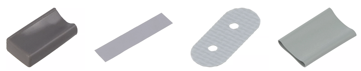 Podkładki Alutronic w ofercie TME: (od lewej) do obudów TO, przyklejane, przykręcane i mocowane klipsem