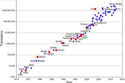 Prawo Moore’a i jego graficzna ilustracja. Źródło: Wikipedia