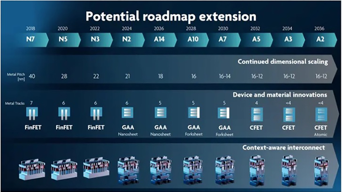Jeżeli założymy że obecny poziom technologiczny to 2 nm, czyli technologia N2, to następny wg. imac będzie A14 ( 1,4nm = 14Å, gdzie Å to jednostka zwana Angstrem 1 nm = 10Å).