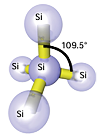 Odległość w sieci krystalicznej krzemu, która ma strukturę diamentu (tzw. sieć typu diamentowego), wynosi około 0,543 nm (5,43 Å), co jest długością krawędzi jego komórki elementarnej. W tej strukturze każdy atom krzemu jest połączony wiązaniami kowalencyjnymi z czterema innymi atomami, tworząc sieć opartą na czworościanach foremnych tzw. tetraedrach.