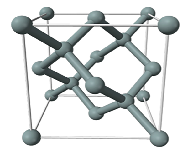 Sieć krystalograficzna pojedynczej komórki monokryształu krzemu. Źródło: Semiconductor Devices: Theory and Applications, autor James M. Fiore , 2021