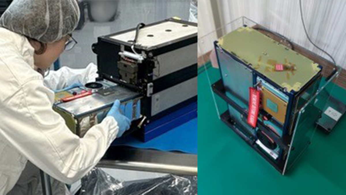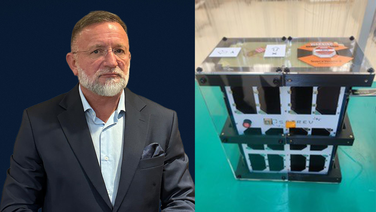 Dr Daniel Więzik, prezes zarządu SatRev S.A.; nanosatelita PW6U. Źródło: SatRev