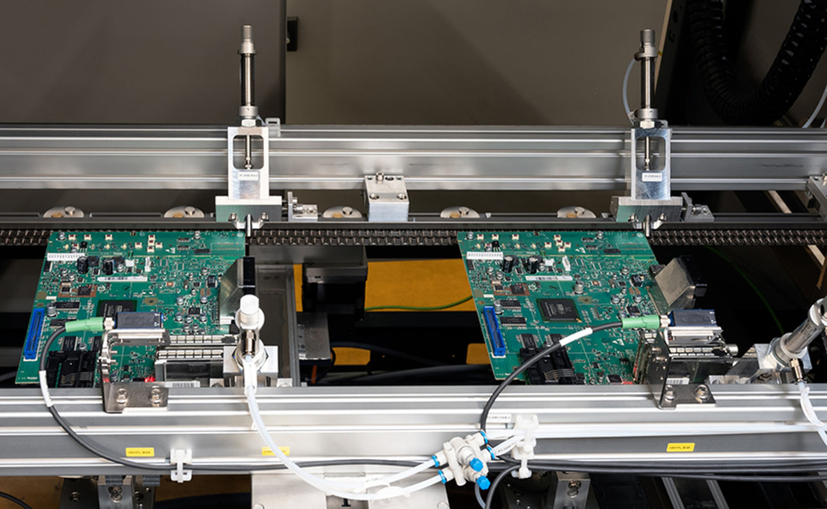 W związku z tym, głównym założeniem nowej serii VERSAFLOW ONE X jest więc wysokowydajna produkcja przy relatywnie niskich kosztach. Jak zatem działa system ONE X? Dwie płytki PCBA mogą być równocześnie procesowane na jednej linii systemu transportowego w dostępnej przestrzeni roboczej modułów topnikowania, podgrzewania i lutowania.