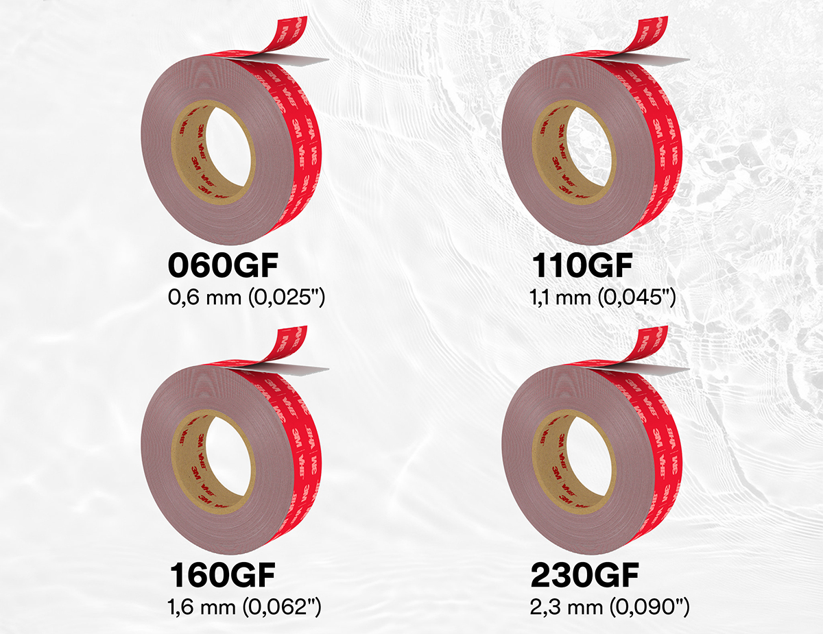 Dostępne są cztery wersje taśmy 3M™ VHB™ Max różniące się grubością