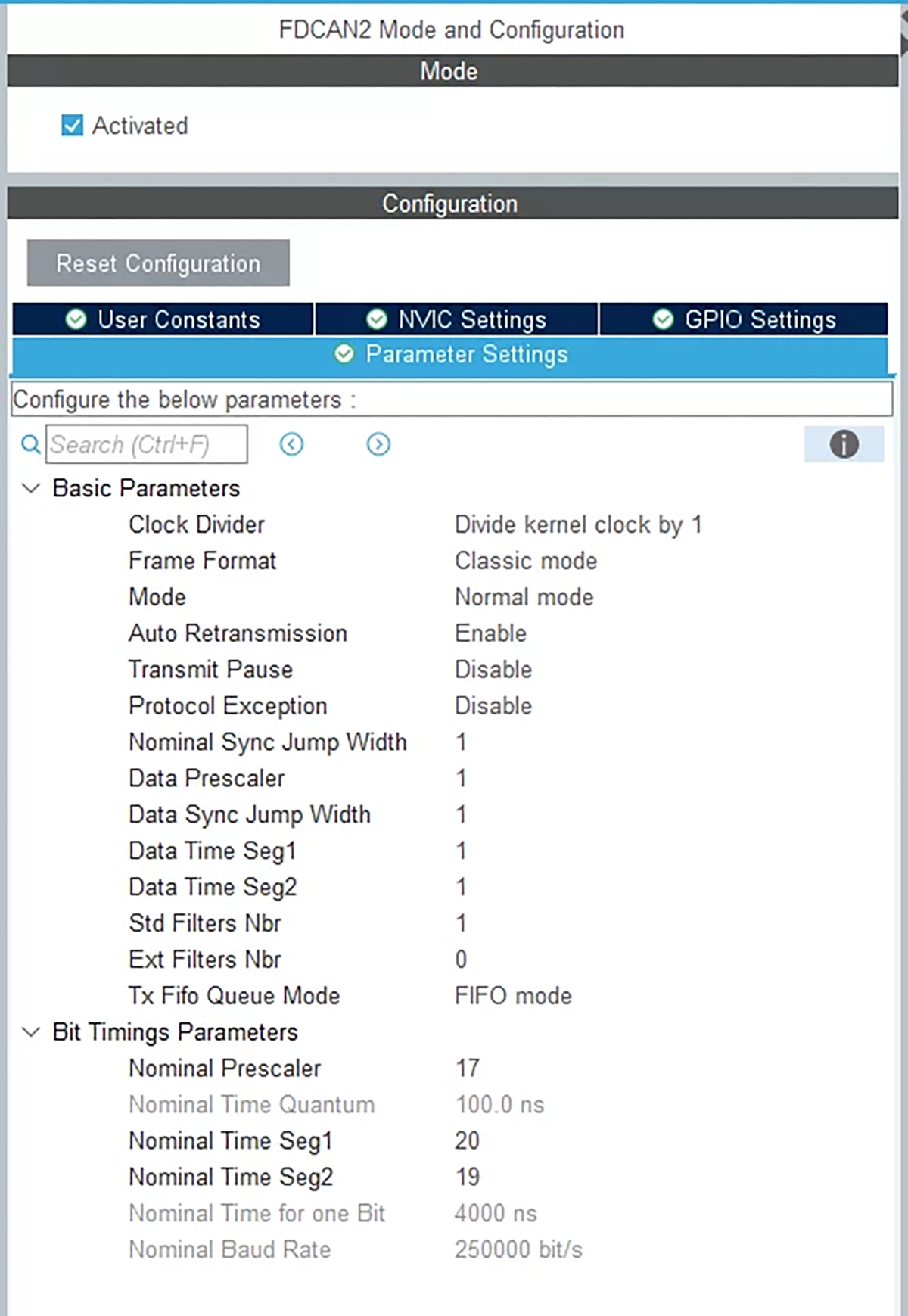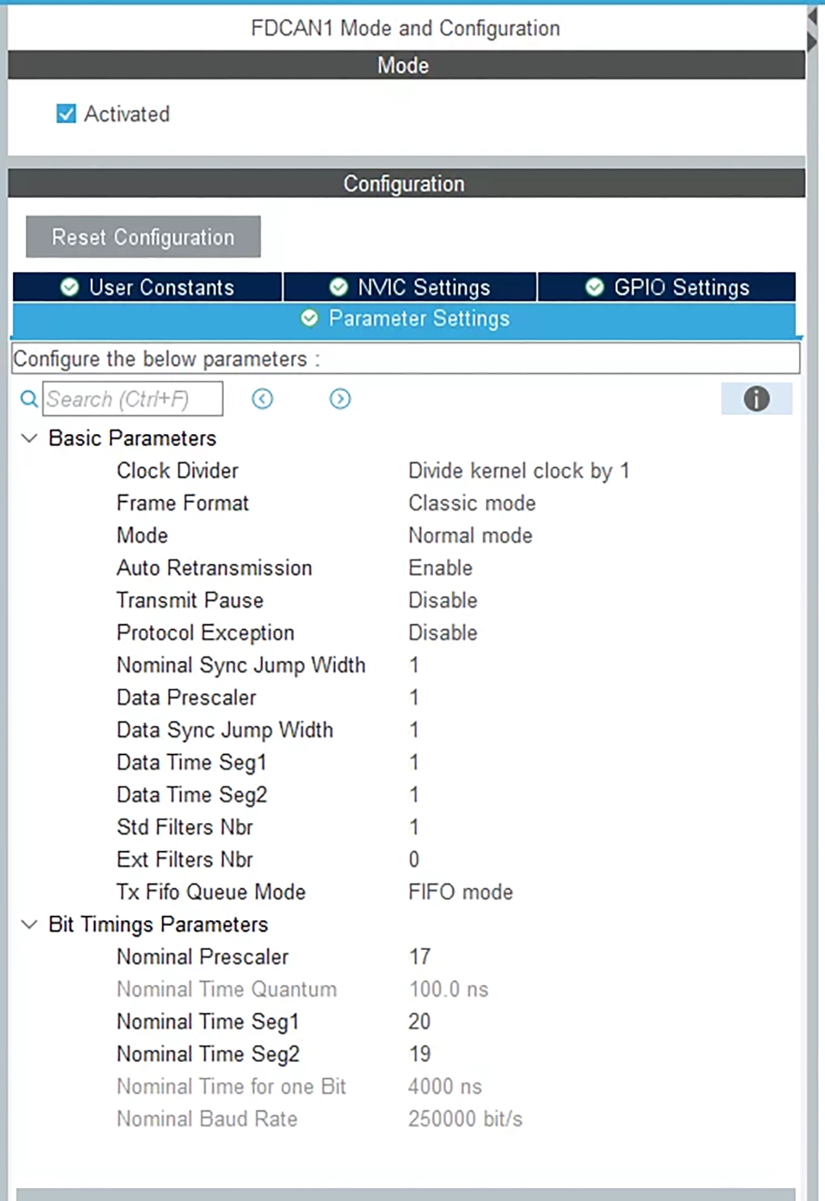 Konfiguracja CAN1: