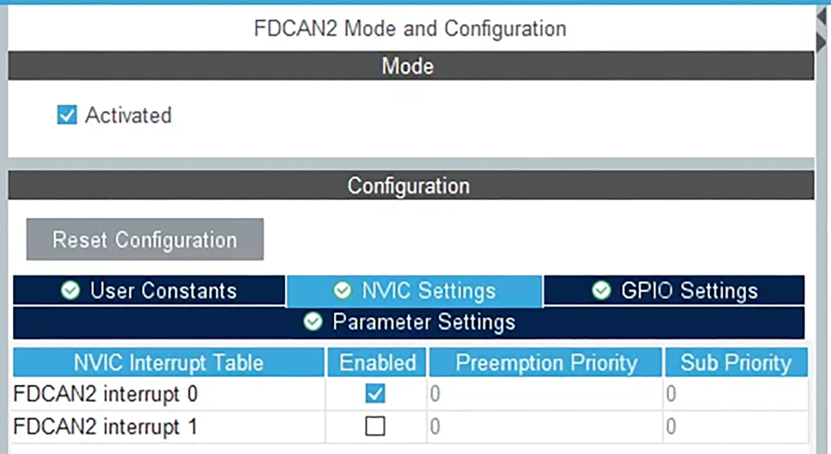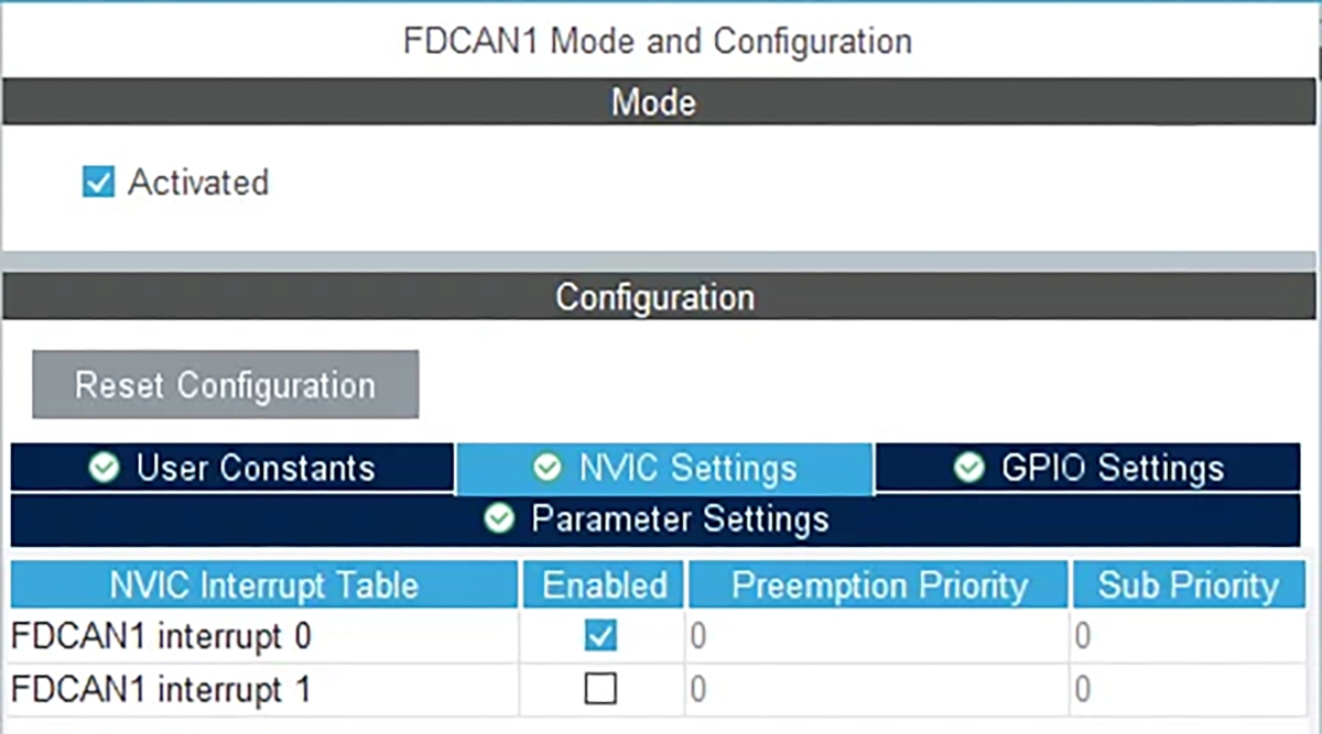 Konfiguracja przerwania CAN1: