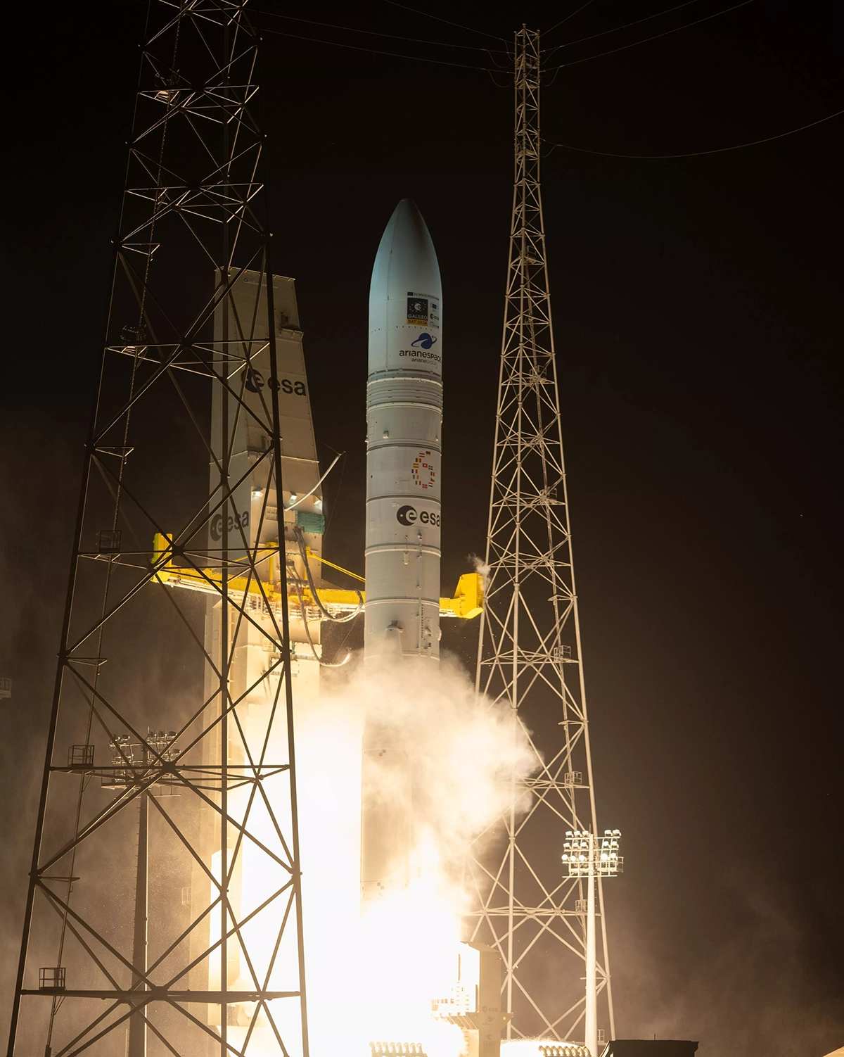 Stopień centralny i rakiety nośne zapewniają ciąg w pierwszej fazie lotu. Stopień centralny jest napędzany silnikiem Vulcain 2.1 (zasilanym ciekłym tlenem i wodorem), a główny ciąg podczas startu zapewniają rakiety nośne P120C. Górny stopień jest napędzany silnikiem Vinci z możliwością ponownego zapłonu, również zasilanym ciekłym tlenem i wodorem. Górny stopień został uruchomiony dwukrotnie, aby osiągnąć orbitę wymaganą dla tej misji.