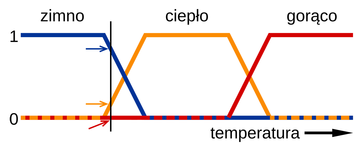 Zaznaczonej czarną pionową linią temperaturze można przypisać jednocześnie wartości, które można zinterpretować jako: dość zimna, ledwo ciepła i jeszcze nie gorąca. Takie podejście pozwala przykładowo na regulację działania układów hamulcowych.