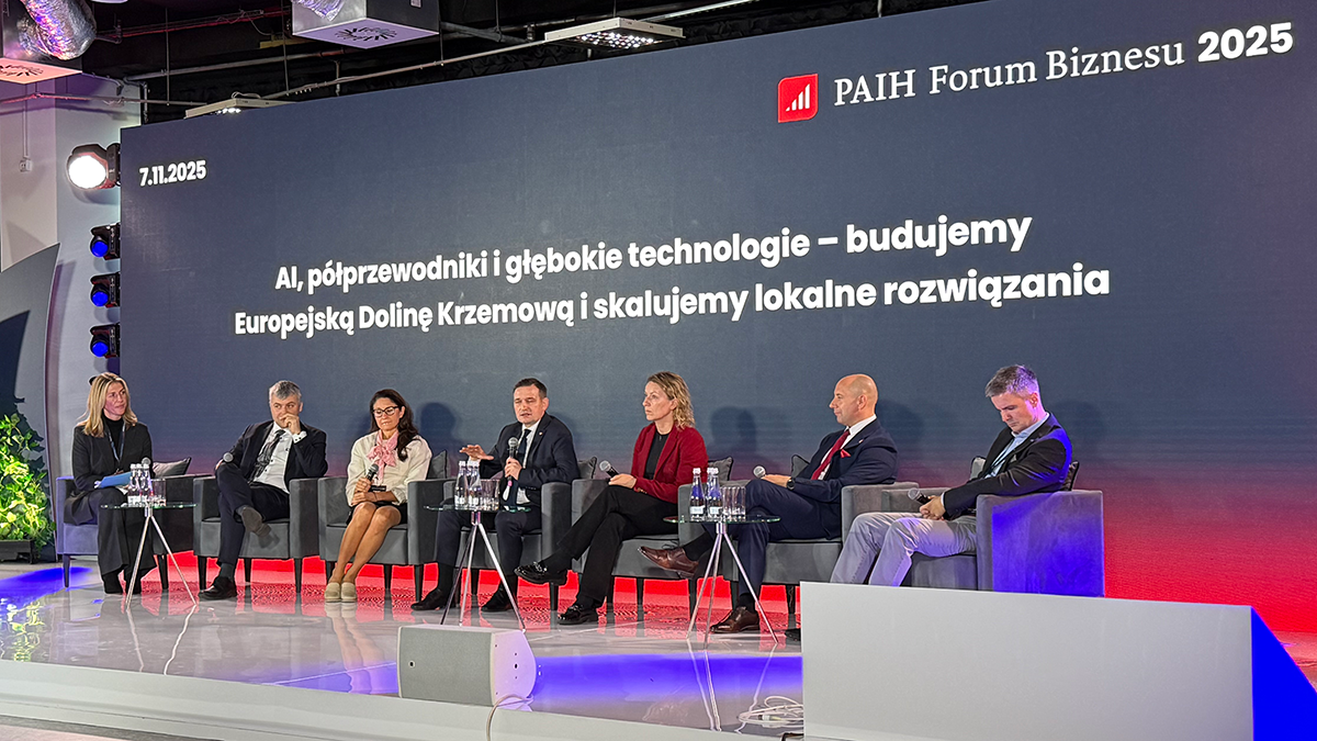 Podczas Forum Biznesu PAIH, który odbył się na początku listopada ub.r. na terenie PGE Narodowy, miało miejsce spotkanie panelowe dotyczące wspierania firm tworzących nowoczesne technologie. Dyskusję na temat „AI, półprzewodniki i głębokie technologie – budujemy Europejską Dolinę Krzemową i skalujemy lokalne rozwiązania” prowadziła Justyna Korycka, adwokat z kancelarii Olesiński i Wspólnicy. Jej rozmówcami byli: Adam Piotrowski, prezes VIGO Photonics, Agnieszka Szweda, ekspert PAIH, Michał Jaros, wiceminister MRiT, Magdalena Dziewguć, prezes Google Cloud Polska, Max Dropiński, ekspert z SEMI i Piotr Mieczkowski z Krajowej Izby Gospodarczej Elektroniki i Telekomunikacji. Na początek moderator zapytała panelistów o to, co należy rozumieć przez głębokie technologie i które rozwiązania powinny być wspierane jako strategiczne, z punktu widzenia Polski i Europy.