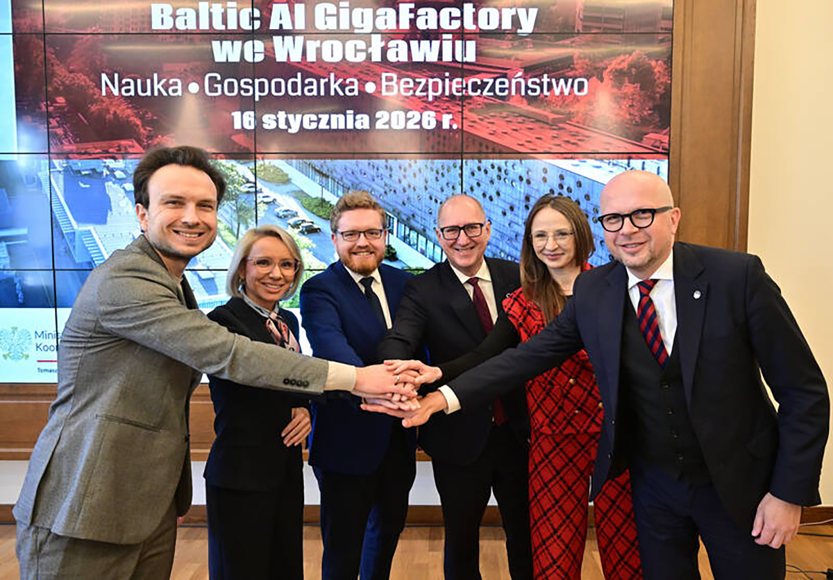 W piątek odbyła się konferencja naukowa „Baltic AI Gigafactory we Wrocławiu – Nauka, Gospodarka, Bezpieczeństwo”, w której udział wzięli m.in. Agnieszka Dziemianowicz-Bąk, ministra rodziny, pracy i polityki społecznej, Dariusz Standerski, wiceminister cyfryzacji, Anna Sobolak, posłanka na Sejm RP, członkini Komisji Cyfryzacji, Innowacji i Nowoczesnych Technologii, Michał Rado, wicemarszałek Województwa Dolnośląskiego, dr Piotr Kozdrowicki, wicewojewoda dolnośląski, Jakub Mazur, wiceprezydent Wrocławia oraz prof. Arkadiusz Wójs, rektor Politechniki Wrocławskiej.