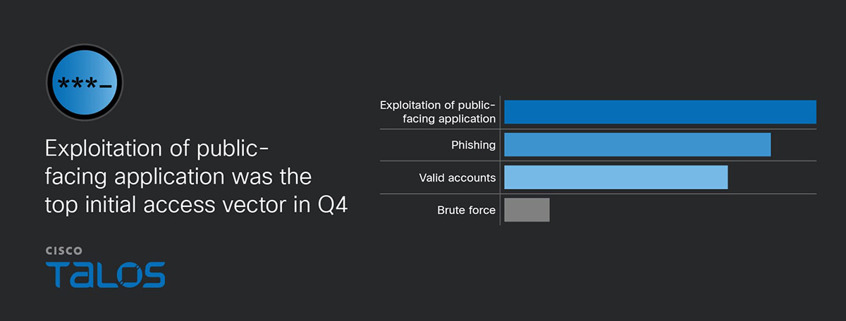 IV kwartał 2025 roku potwierdził, że podatności publicznie dostępnych aplikacji nadal odgrywają kluczową rolę w incydentach bezpieczeństwa. Odpowiadały za blisko 40% wszystkich interwencji zespołu Cisco Talos Incident Response, potwierdzając, że luki w powszechnie używanych rozwiązaniach wciąż pozostają jednym z największych wyzwań dla bezpieczeństwa organizacji. Jednocześnie phishing i nadużycia kont użytkowników coraz częściej decydowały o skuteczności ataków.