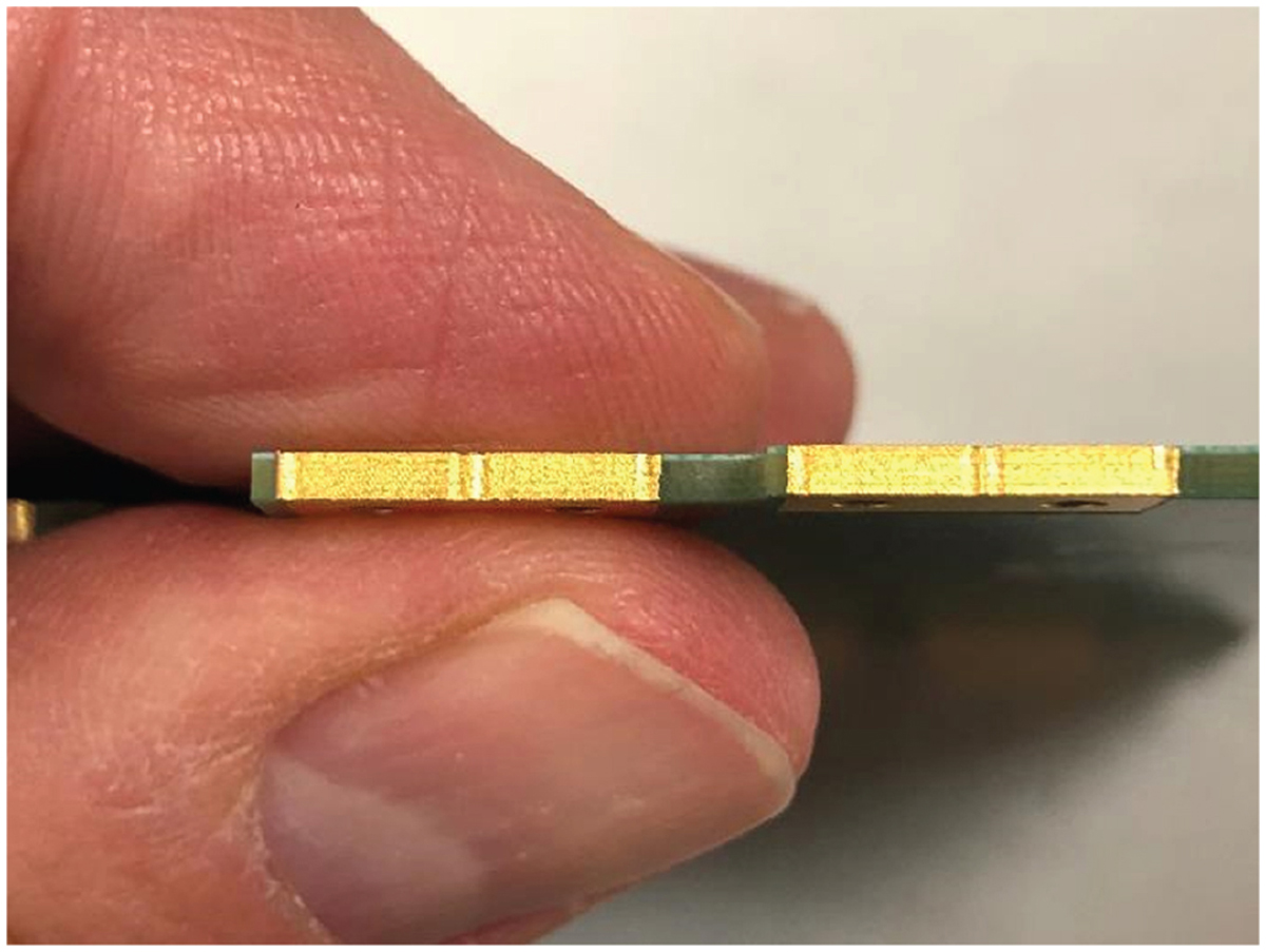 Metalizacja krawędzi i laserowe frezowanie krawędzi może zwiększyć koszt, złożoność i czas produkcji. Jeśli forma końcowego urządzenia pozwala na połączenie płytek w układzie warstwowym (w przeciwieństwie do połączenia bocznego), realną opcją mogą być pionowe połączenia międzywarstwowe.