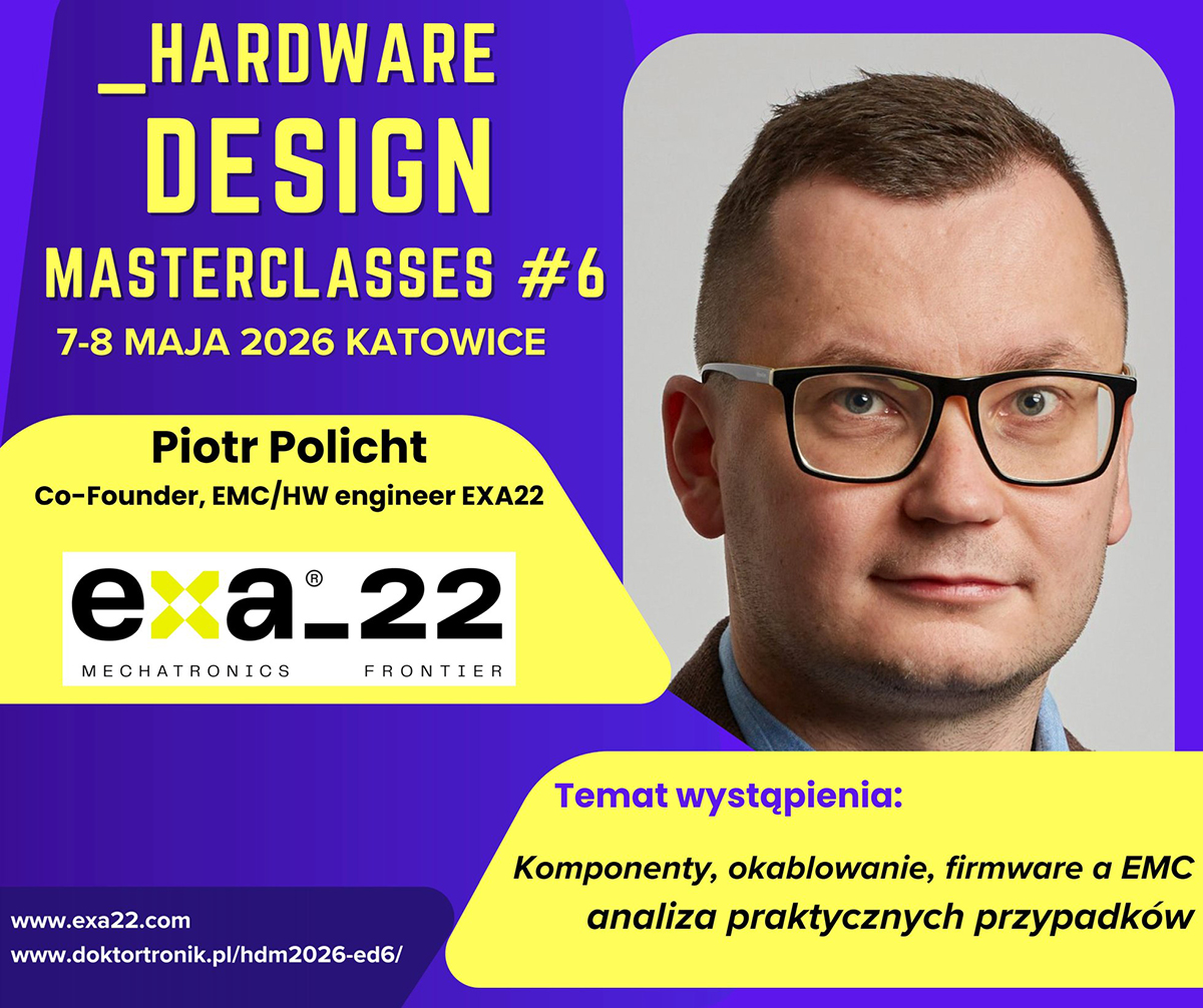 Prezentacja oparta będzie na rzeczywistych przypadkach projektowych, w których dobór komponentów, prowadzenie przewodów oraz sposób implementacji firmware’u miały bezpośredni wpływ na wynik testów. Piotr Policht przedstawi przebieg analizy problemu, identyfikację źródła emisji oraz zastosowane działania naprawcze. Wystąpienie skoncentruje się na praktycznej diagnostyce i wnioskach, które można wdrożyć już na etapie koncepcji projektu. Firma EXA22 jest wystawcą i sponsorem konferencji.
