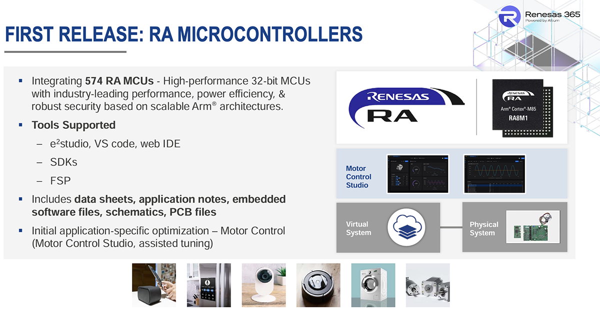 Po wprowadzeniu koncepcji firma Renesas uruchamia obecnie pierwszą fazę Renesas 365, integrując ponad 550 wariantów rodziny mikrokontrolerów (MCU) RA oraz mikrokontrolerów opartych na architekturze Arm®, wraz z pełnym zestawem narzędzi programistycznych.