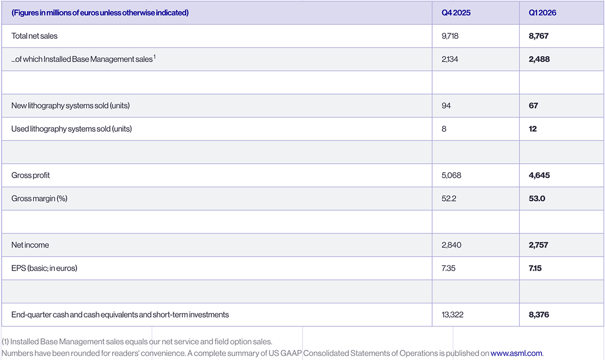 Spółka ASML Holding NV (ASML) opublikowała wyniki finansowe za pierwszy kwartał 2026 roku.