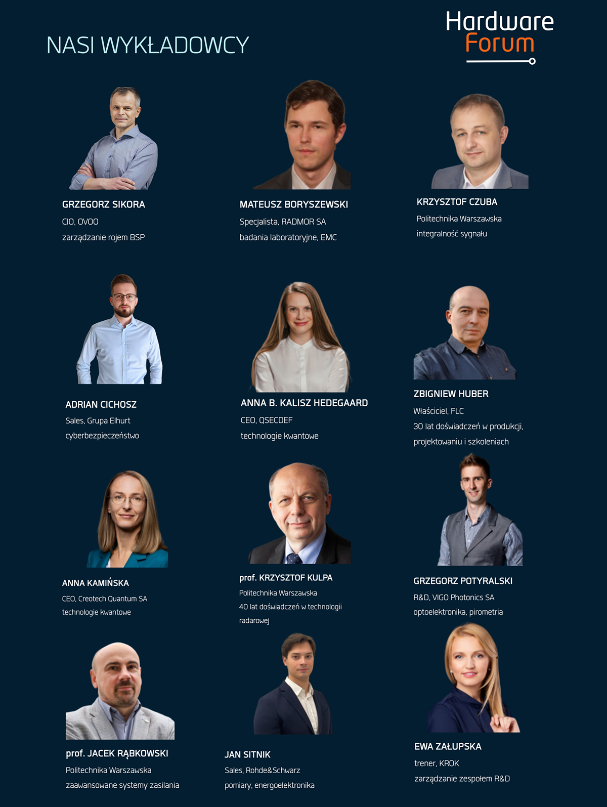 Pierwsza edycja skupia się na aplikacjach militarnych i dual use, jednak poruszane zagadnienia są dość uniwersalne i mogą być przydatne przy bardzo zróżnicowanych projektach. W gronie wykładowców znaleźli się m.in. konstruktor kilkudziesięciu systemów radarowych rozwijanych w różnych technologiach, twórca zaawansowanych układów zasilania oraz autor elektroniki sterującej i synchronizującej dla akceleratorów cząstek elementarnych. Swoją wiedzą podzielą się również specjaliści w zakresie badań laboratoryjnych EMC i D-FMEA, a także inżynierowie aplikacyjni zajmujący się np. pirometrią, cyberbezpieczeństwem oraz energoelektroniką. O technologiach kwantowych opowiedzą prelegentki z Creotech Quantum oraz pan-europejskiej QSECDEF. Podczas warsztatów omówione będą systemy obrazowania dla dronów oraz pomiary i analiza sygnałów RF. W przedsięwzięcie zaangażowane są również firmy VIGO Photonics, RADMOR, Rohde&Schwarz, Politechnika Warszawska, FLC czy Elhurt. Swoją ofertę zaprezentuje 19 wystawców, w tym główny sponsor wydarzenia – polski producent płytek drukowanych, firma Central Point.