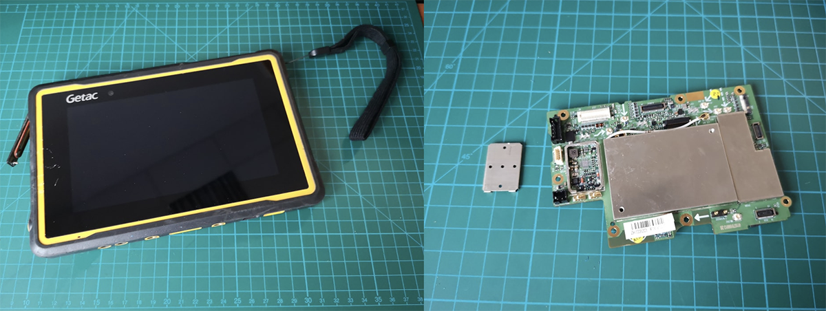 Przypadek drugi: tablet geodezyjny, który się nie włączał, bo bateria była rozładowana i nie można jej było naładować. Producent wycofał ten model zachęcając do zakupu nowszego. Rozkręcamy obudowę i otwieramy „puszki” na płycie głównej.