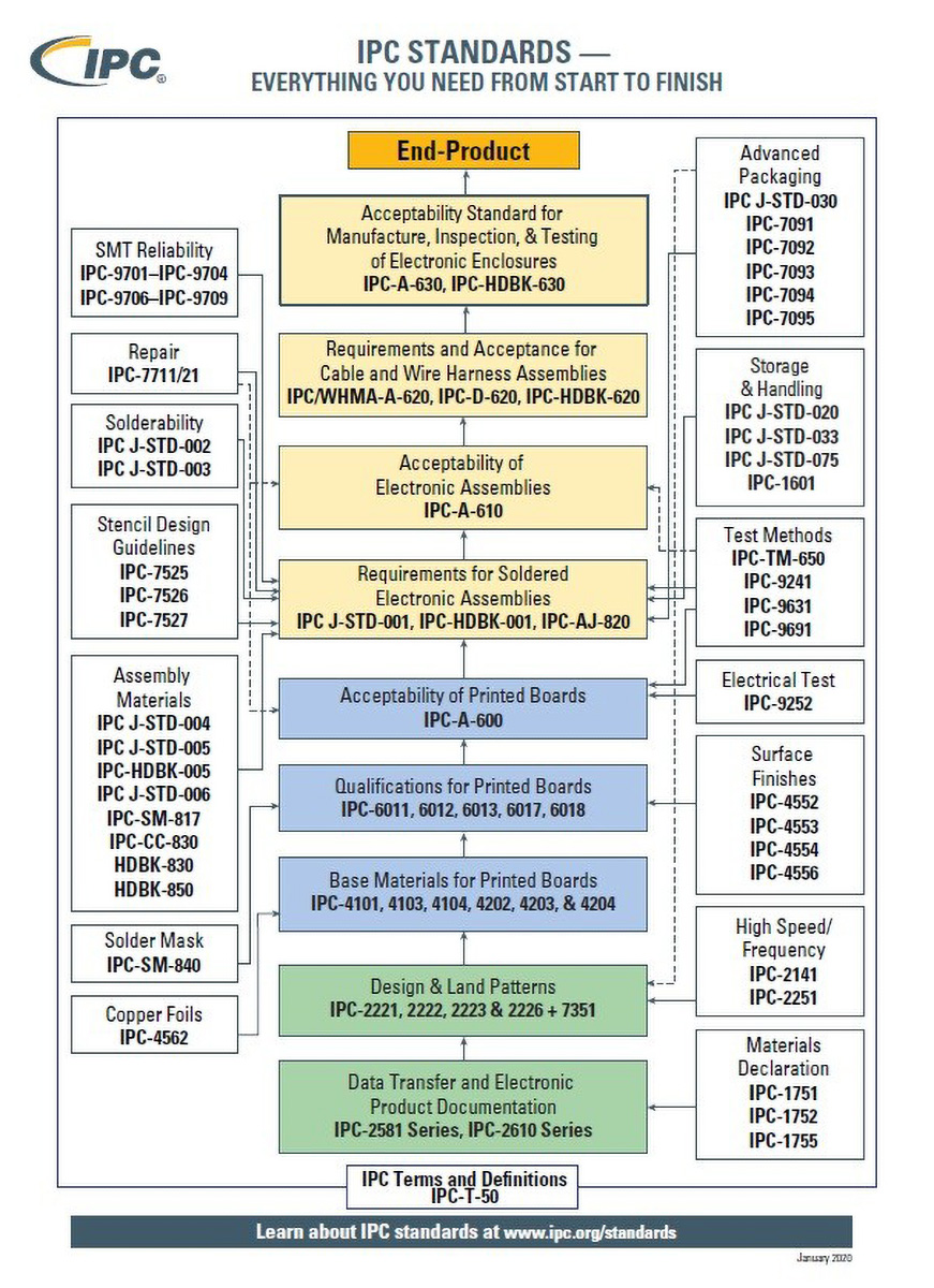 Obecnie klienci, zamawiający elektronikę w firmie projektowej, wymagają spełnienia standardów IPC. Co ciekawe, nie ma do nich alternatywy. Dokumenty są rewidowane co kilka lat w postaci nowelizacji, w zależności od rozwoju technologii i możliwości produkcyjnych. Wśród wielu kategorii znajdują się na przykład zalecenia dotyczące oceny PCB, oddzielnie omawiające płytki sztywne, sztywno-gięte oraz elastyczne. Standardy określają co jest błędem i jakie będą jego konsekwencje w działaniu urządzenia. Zdjęcia wraz z opisami prezentują wszelkie możliwe wady i które z nich są do zaakceptowania. Dużo przy tym zależy od klasy produktu.