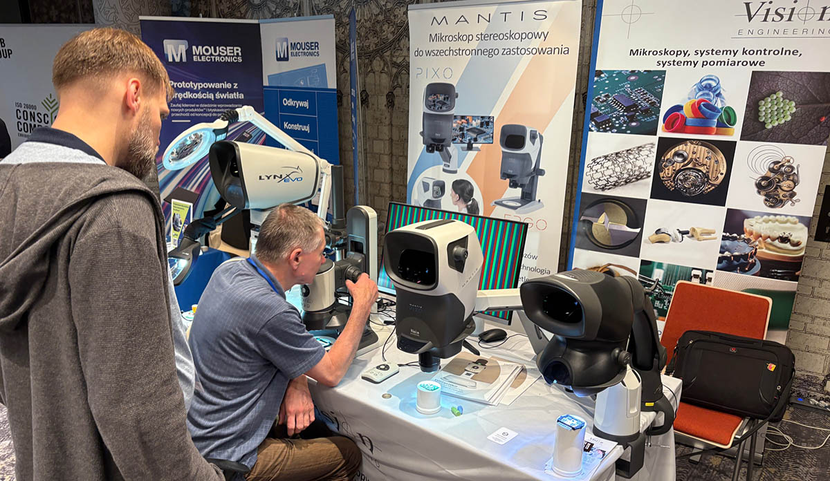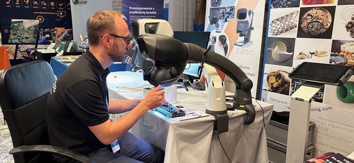 Produkcja elektroniki wymaga specjalistycznych urządzeń do kontroli wizyjnej. Należą do nich szkła powiększające, lupy, kamery i mikroskopy, stanowiące obowiązkowe wyposażenie w każdej profesjonalnej firmie EMS. Sprawdzanie jakości wykonania płytek PCBA było również tematem jednego z wykładów prezentowanych na konferencji B+R elektroniki Tomka Utkowskiego we Wrocławiu. O rozwiązaniach znanej na rynku firmy Vision Engineering opowiadał pracujący tam od niedawna Szymon Gumółka, odpowiadający za rozwój na rynkach w Polsce, Czechach i Słowacji.